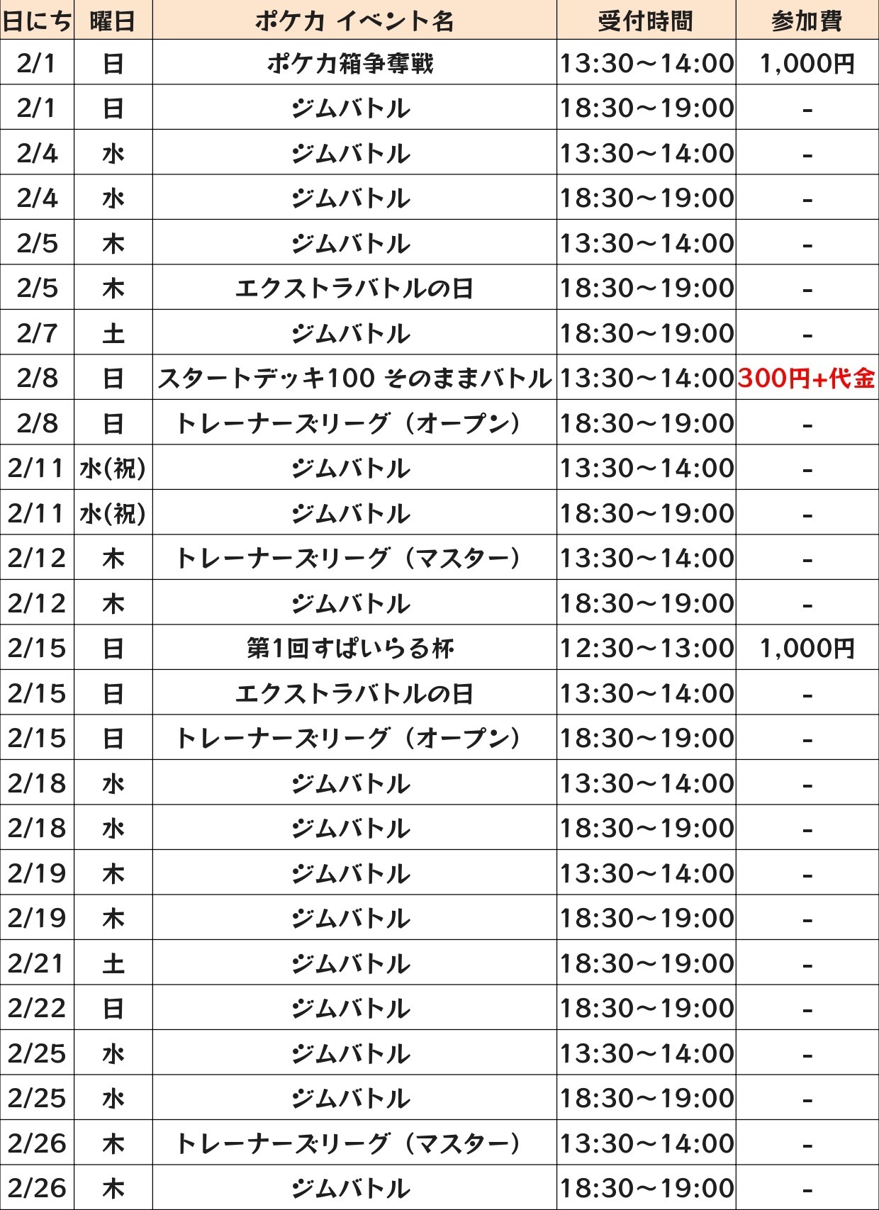 2月度店舗イベント予定