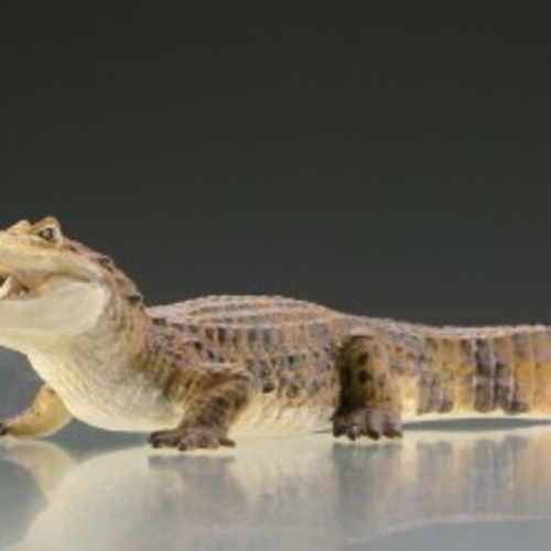 目の上の眼鏡のような隆起が特徴的なメガネカイマン。