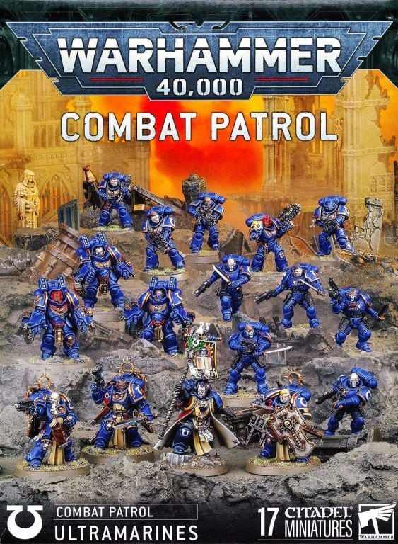 ゲーム「ウォーハンマー40,000」スペースマリーンのウルトラマリーン戦団のコレクションを始めたり、「コンバットパトロール」形式のゲームプレイを楽しむのに便利でお得なプラ製ミニチュア17体セット。