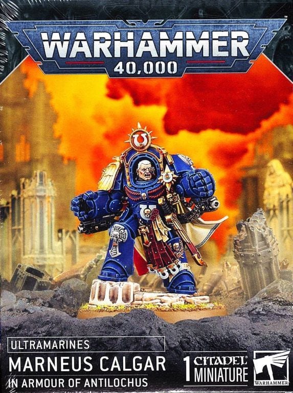 マルネウス・カルガーは、ウルトラマリーン戦団を象徴するカリスマ的指導者であり、無比の戦士です。 彼はアンティロカスの鎧をまとい、戦場を悠然と歩みながら、ウルトラマールのガントレットから放たれるボルト弾の嵐で敵軍を粉砕します。 その破壊力と戦略眼は、帝国全域においても疑う余地のないものです。